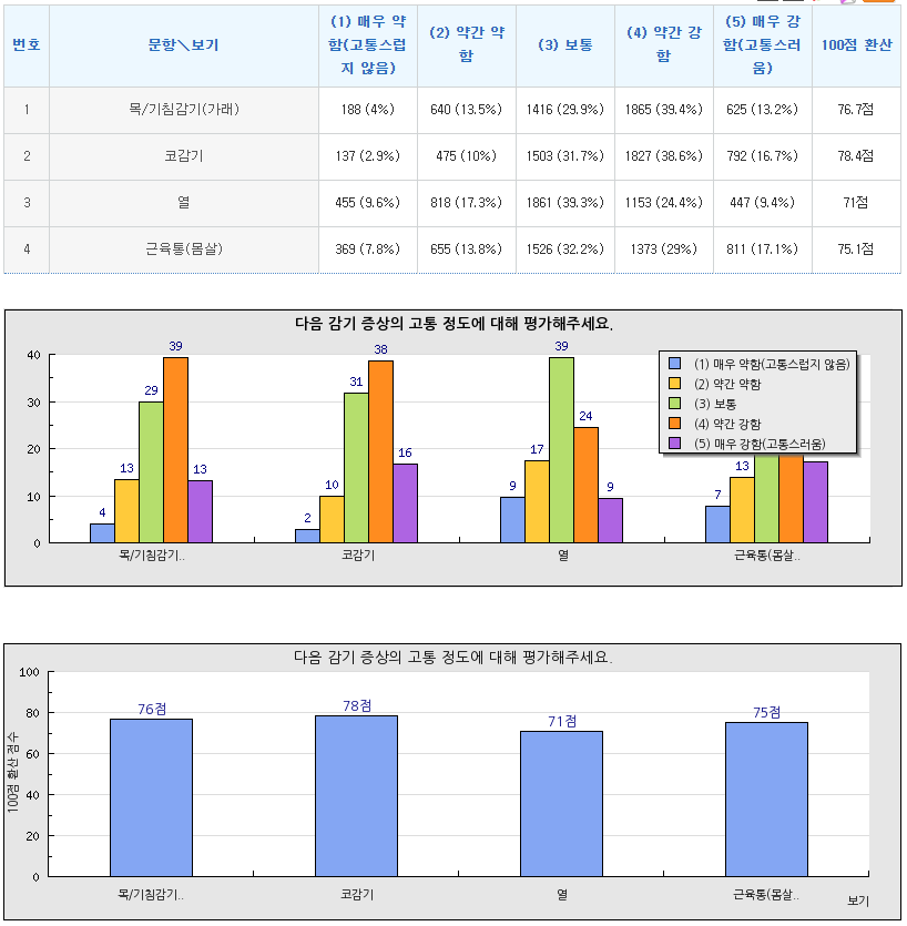 (다음 감기 증상의 고통 정도에 대해 평가해주세요.)